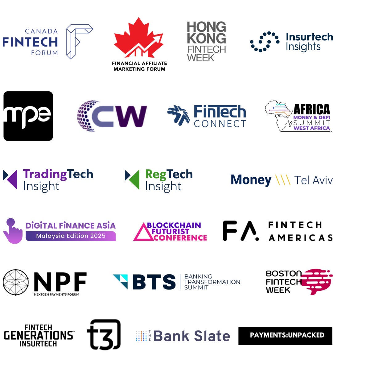 Global Fintech Insider subscribers benefit from discounts of up to 50% on 25 global fintech conferences and 2 fintech newsletters.